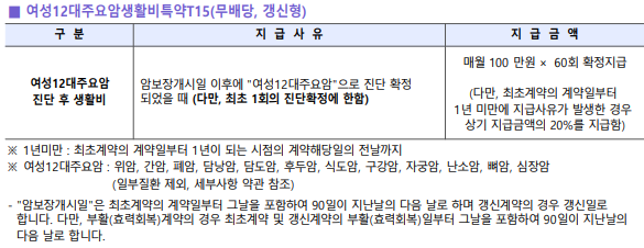 1년 후 자궁암 혹은 난소암 진단금 1212대 주요 암 생활비 특약으로 매월 ᅵ ずつ씩 60회 ᅭ표적항암 약물치료 시에 치료비 1 ガン암ᅳ이 지급됩니다.