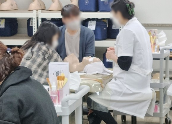 피부실무수업도 오전반/오후반/야간반의 3타임이어서 직장을 퇴근해서 수업을 들을 때는 야간반 수업을 받고 대체휴일이나 회사 쉬는 날은 낮 시간대로 이동해서 수업을 들으러 갈 수 있었습니다.