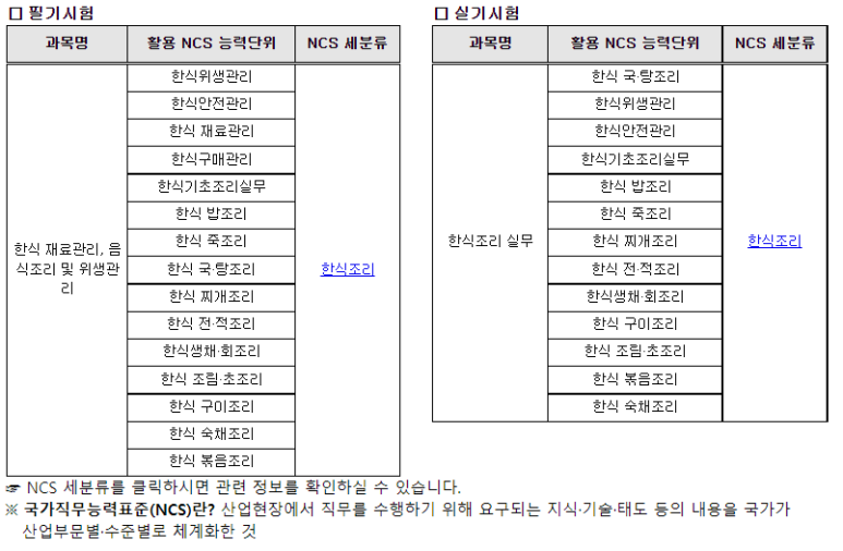 한식에 대한 식재료 관리 및 조리, 위생에 관하여 국가가 직무능력을 인증하는 자격증