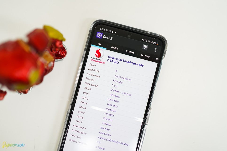 AP는 스냅드래곤 888입니다 옥타코어, 2.84Ghz의 빠른 클럭을 지원합니다. 비교적 높은 포지션의 AP를 탑재하고 있지만 성능을 100% 최대한 활용할 수 없다는 점도 기억하시기 바랍니다.