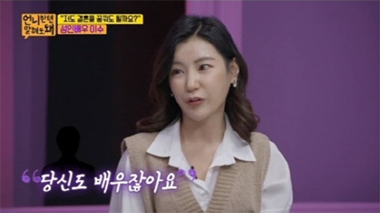 (사진) 성인 배우 이수 작품은 매번 레전드를 기록하며 큰 인기를 끌고 있다.성인배우 이수는 SBS 새 예능프로그램 언니한테는 말해도 돼에 출연해 예전처럼 열심히 만난 남자친구의 폭력적인 말에 마음의 상처를 받았다고 토로했다. 그리고 지금 진지하게 사귀고 있는 현재의 남자친구와 행복한 가정을 꾸리고 싶은 마음도 고백했습니다.