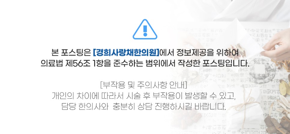 안녕하세요. 호흡기 질환에 대한 체계적인 한방치료를 전달하는 ‘경희사랑채 한의원’입니다.