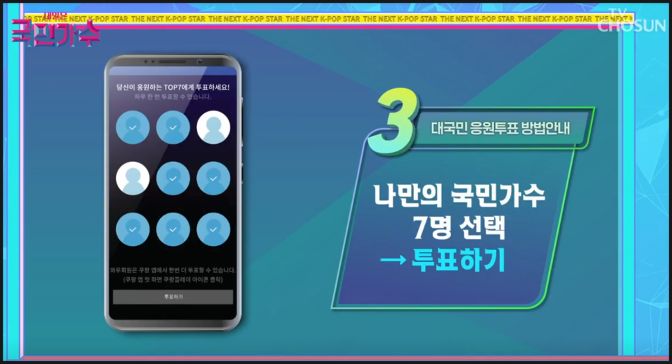 3. 자신만의 국민가수 7명 선택투표 (경연마다 남은 참가자를 7명까지 투표할 수 있습니다)