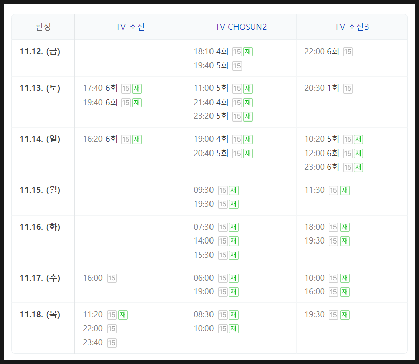 본방송 이외의 재방송도 TV조선채널에서 보실 수 있습니다.