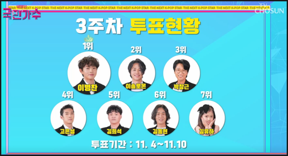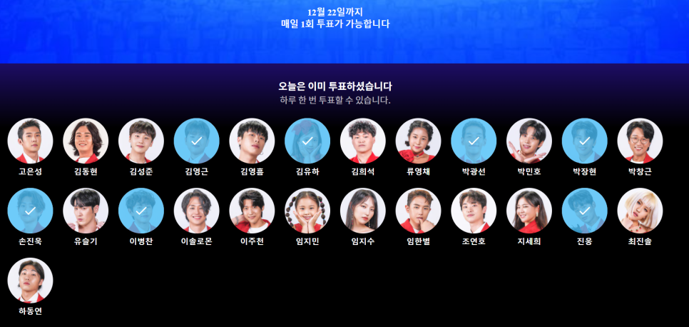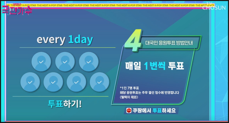 옆 분이 하신 투표는 제가 한 게 아니에요 해당 응원 투표는 앞으로 결선 점수에 반영된다고 합니다<탈락자는 제외>