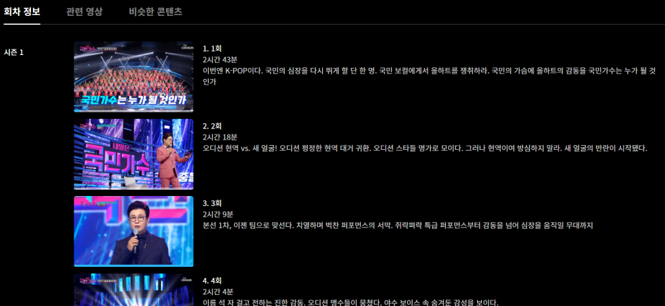 이번 데스매치에서 탈락한 참가자 15명중 무대의 감동이 적었던 참가자까지 10명이나 랭크인해서 한편으로는 시청자들에게 인기있는 참가자는 버리지 못하는구나~결국 최종순위도 당일 실력보다는 펜덤이 가장 큰 요소가 된다는 것을 느꼈고, 이 부분이 경연의 긴장감을 떨어뜨려 재미가 반감되는 결과를 내서 시청하면서 조금 아쉬움이 남았어요.국민가수 재방송 편성표 & 재방송