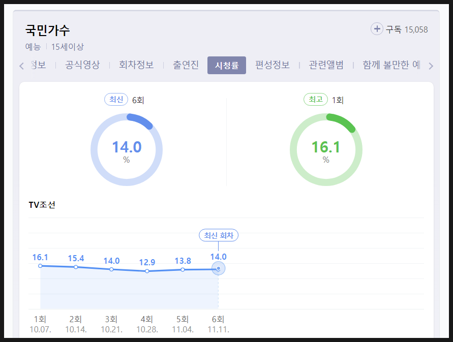 10월 7일 진행된 1화는 시청률이 16%를 기록했고