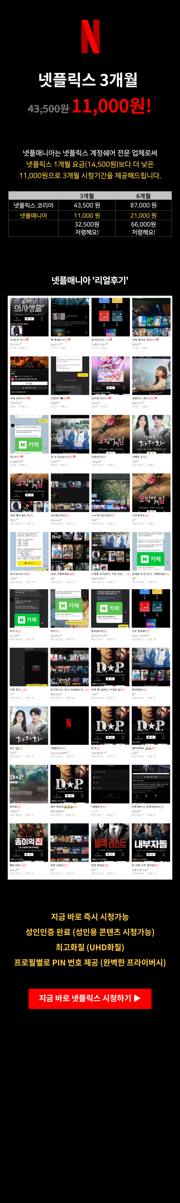 이러한 이유로 합리적인 분들은 함께 시청할 지인들을 찾아서 4명이서 돈을 나눠서 시청하시는 분들도 계시지만, 4명이서 요금을 나눠서 내면 비용 부담이 없을 텐데 주변에서 함께 시청하는 친구들에게 연락해서 설득해야 하는 것이 번거롭기 때문에 대다수는 혼자 요금을 다 내서 사용하는 분들도 꽤 많다고 생각합니다. 이렇게 불편함을 해소할 수 있는 유일한 방법은 넷플릭스 화질 저하 TV 최저가 계정을 공유하는 서비스입니다. 3개월에 개월이고, 6개월은 21,000으로 프리미엄 요금제 1개월 가격도 안 되는 금액으로 3개월 시청할 수 있다는 점이 큰 장점이다. 그래서 지금은 굳이 넷플릭스를 결제해서 같이 시청하는 친구에게 연락할 필요 없이 보고 싶은 만큼 보고, 더 보고 싶으면 연장하고, 보고 싶지 않으면 연장하지 않는 방식이라 편합니다.