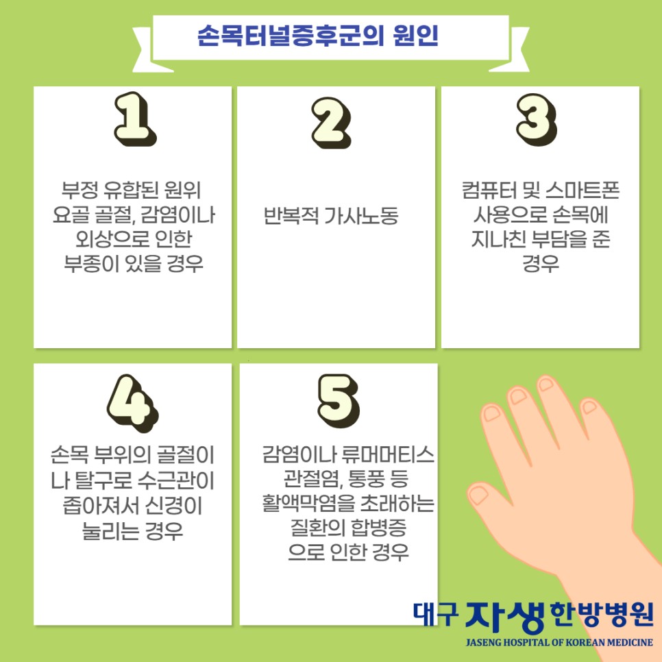 손목터널증후군 원인 경주도수치료 대구자생한방병원