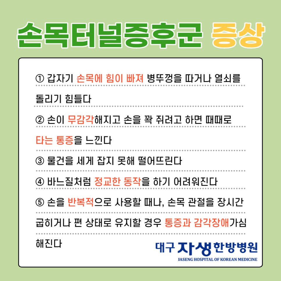 손목터널증후군증상 경주도수치료 대구자생한방병원