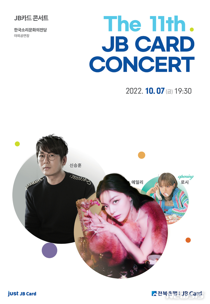 로시, 에일리 그리고 신승훈까지 JB카드 콘서트 3년 만에 다시 열린 JB카드 콘서트.JB금융그룹 전북은행이 주최하는 ‘제11회 JB카드 콘서트’가 한국소리문화의전당 야외공연장에서 열렸다. 지난 2019년 10회 콘서트를 끝으로 코로나19 때문에 2년간 공연을 이어가지 못했지만 올해 3년 만에 JB카드 콘서트가 다시 찾은 것이다.