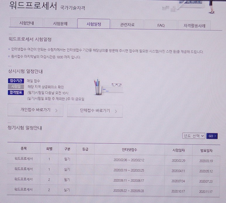 이렇게 일정도 연도별로 새로 나오면 확인할 수 있으니까 체크해 보세요. 이력서작성시날짜를입력하거나기타제출해야하는등필요가있는경우에는워드프로세서자격조회방법을함께알아보았으니이렇게확인하시기바랍니다.
