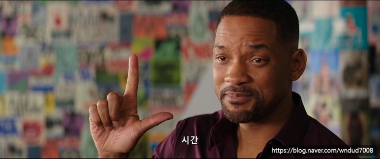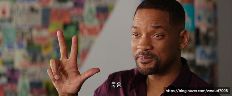 그리고 다음 장면에서는 흰머리와 수염, 미친 듯이 도미노를 세우고 있는 윌 스미스. 그리고 음악까지.