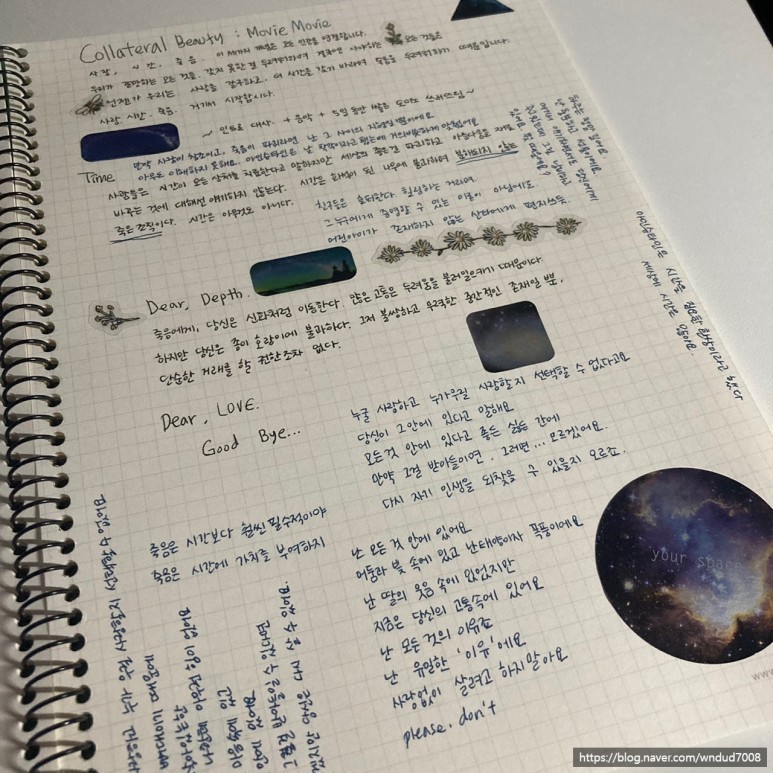 나는 사랑과 시간과 죽음을 만났다(Collateral Beaty)가 끝날 무렵에야 죽음에 쓴 편지 내용의 진짜 의미를 다 이해한 듯하다.