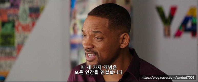 첫 장면 대사의 일부인 윌 스미스는 성공한 광고회사 CEO로 직원들 앞에서 연설을 하는데 대사가 꼬였다.처음부터 PAUSE 버튼을 눌러 대사를 쓰기 시작했다.