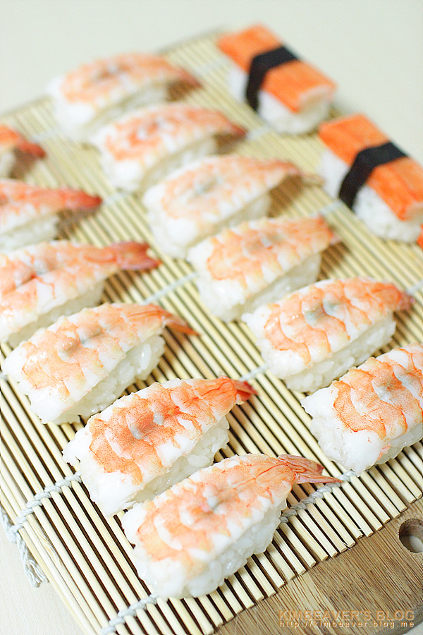 새우와 아스파라거스는 롤 초밥을 위해 튀김 가루로 튀겼습니다. 채식주의자 롤 초밥에는 계란, 당근, 아스파라 튀김을 넣어 주었습니다만, 맛도 좋고 튀김 덕분에 식감도 좋았습니다. 밥을 최대한 얇게 깔고 계란 지단으로 채운 롤초밥 색깔 예쁘지 않나요?