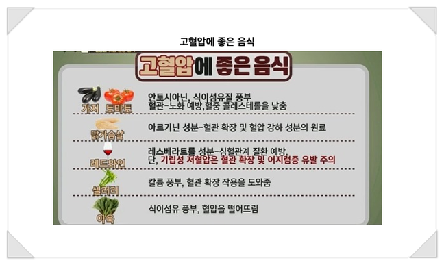 이는 고혈압이 아니라 몸의 혈액에 집중해 혈액 오염을 깨끗하게 해주는 음식이다.
