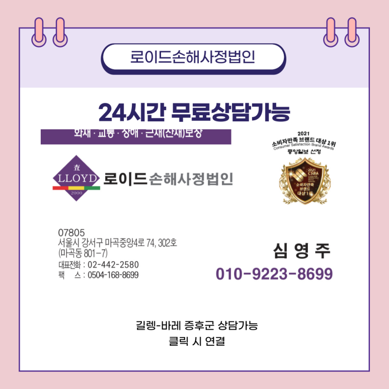 로이드손해사정법인은 한국 최대의 독립 손해사정법인으로 항상 보험소비자의 편에 서서 보험소비자의 권리를 지키고 있습니다.
