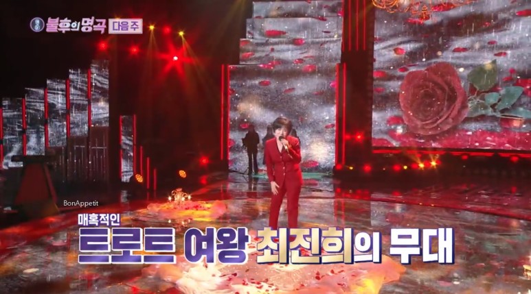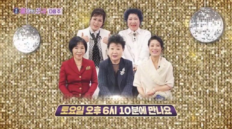 가수 현미는 댄서들과 함께 신나는 무대를 준비하고, 매혹적인 트로트 무대를 준비한 최진희와 짙은 감성으로 무장한 채 무대에 오른 서울대모 임희숙 가황 나훈아의 곡을 재해석한 이자영, 감동의 하모니를 선사하는 원조 한류스타 정훈희까지 5명의 고퀄 무대가 감동을 준다고 한다.