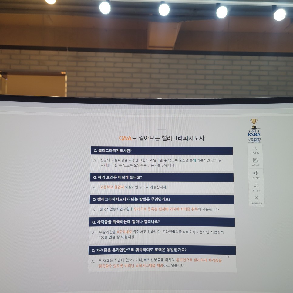 참고로! 캘리그라피 자격증은 고졸 이상이면 누구나 응시할 수 있었습니다! 제가 찾던 것이 이것이라고 생각하여 수업을 들을 수 있는 교육과정을 배웠습니다.