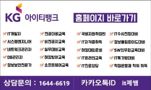 국내 IT전문학원 최대 규모, 20년 연혁을 가진 KGIT뱅크입니다. 오라클 공인인증 교육기관으로 대면교육, 비대면 라이브 교육, 온라인 강의 등 3개의 OCP 교육과정을 가지고 있습니다.<교육과정은 한 달간 진행됩니다.각각의 장점은 다르지만 온라인 강의의 경우 재수강권을 제공한다는 점에서 처음 공부를 시작하는 분이라면 1개월권으로 90일간 수강할 수 있는 WDP 인강 교육과정을 추천합니다.