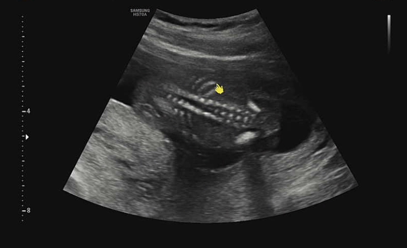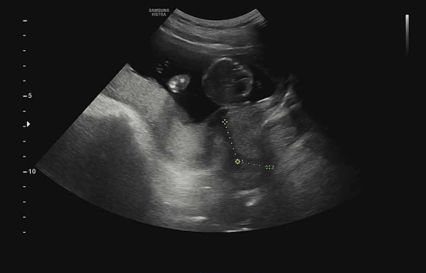 제일 먼저 본 머리! 뇌가 잘 정착해서 성장하고 있다고 했다. 뇌 중간 부분의 길이도 쟀지만 어떤 부위였는지는 잘 기억나지 않는다^^;처음 듣는 부위였던 것 같다.