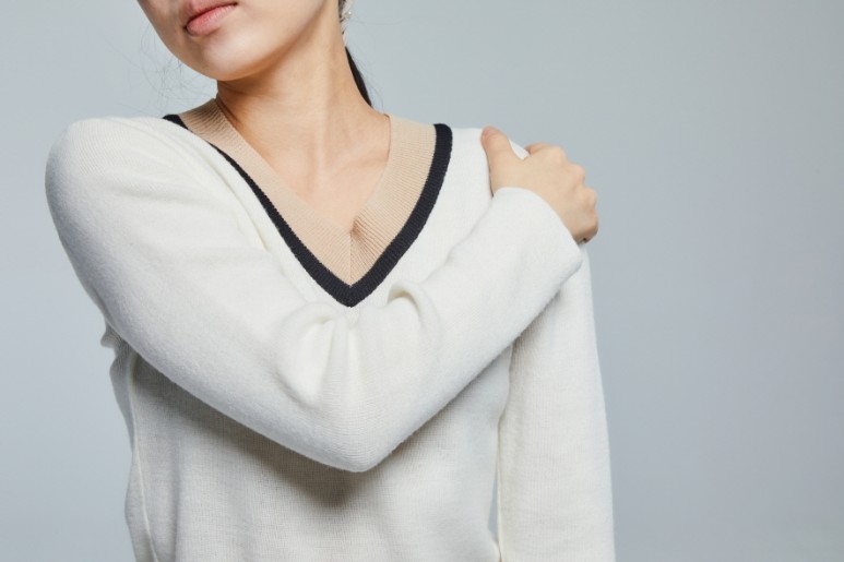 중년 여성의 어깨 통증의 원인으로 가장 일반적인 것은 「오십견」입니다. 어깨 만성 통증과 운동 범위 감소를 일으키는 오십견은 전체 인구의 약 2~5% 정도에서 발생하는 비교적 흔한 질환입니다. ‘오십견’이라는 말의 의미는 단순히 ‘오십 세 어깨 관절’로서 ‘오십 세 정도가 되면 어깨가 아프다’는 표현에서 유래했다고 합니다. 정확한 질환명은 ‘동결견’ 또는 ‘유착성 관절낭(막)염’입니다.