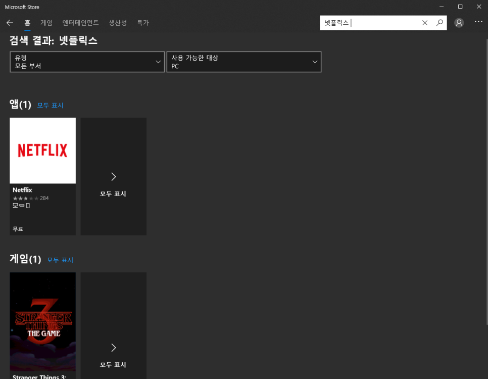 #마이크로소프트스토어 #넷프릭스앱 #윈도10