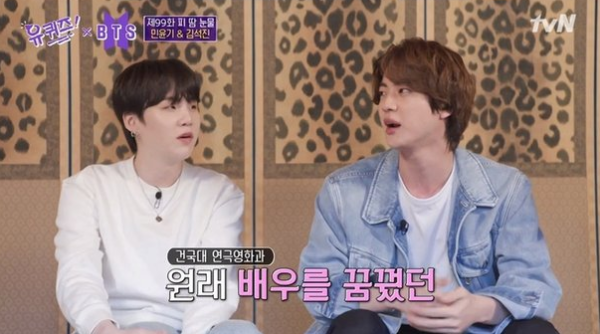 유재석이 그동안 연예인의 꿈이 전혀 없었느냐고 묻자 진은 배우가 되려고 했다고 털어놓았다.