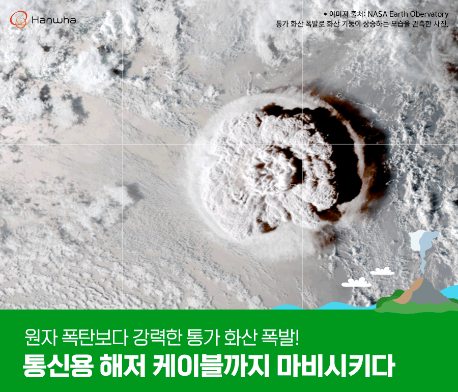 지난 1월 15일, 오세아니아의 남태평양에 위치한 섬나라 통가에서 높이 1,800m, 폭 20km에 이르는 거대한 화산 분화가 발생했습니다. 화산기둥은 지상 55km까지 올라가서 성층권을 넘었을 것으로 추정되었는데요. 그 모습은 우주까지 일부 관측될 정도였습니다. 이번 통가 화산 폭발은 1991 년 피나투보 화산 폭발 이후 지구에서 가장 강력한 화산 폭발로 알려져 있습니다.