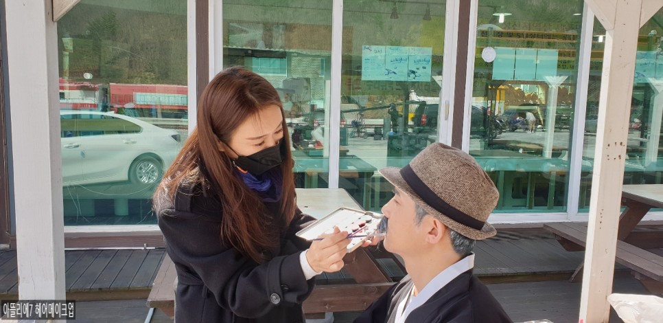 일단 배우분 메이크업과 헤어를 해드렸는데