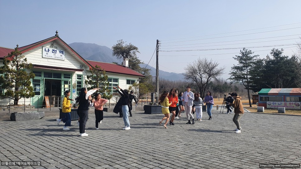강원도 정선군 북평면 북평8길 38 나정역 사이가 테이블 위에 헤어 도구와 메이크업 세팅을 하고,