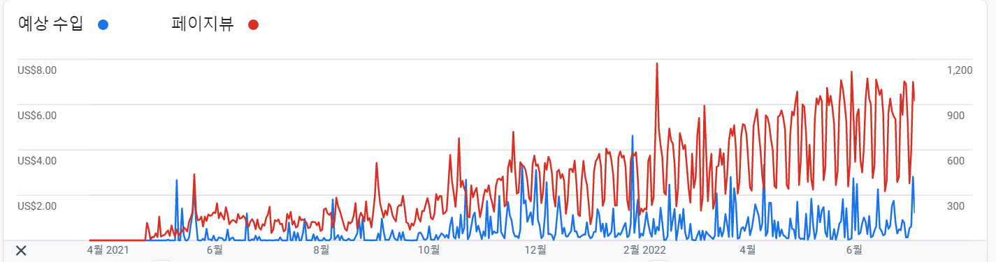 2022년 1년간의 애드센스 수익 그래프입니다. 캐리어 하이를 찍은 8월조차도 월 수익이 15달러 미만이네요. 나름 오래된 티스토리 계정이라 그런지 다음이나 네이버 노출은 자주 있는 편인데 그래도 절대적인 조회수가 부족한 것 같네요. 내년에는 제 돈을 낸 소감 외에도 새로운 콘텐츠를 찾아서 더 키워보려고 합니다. 아, 물론 네이버가 1위죠.