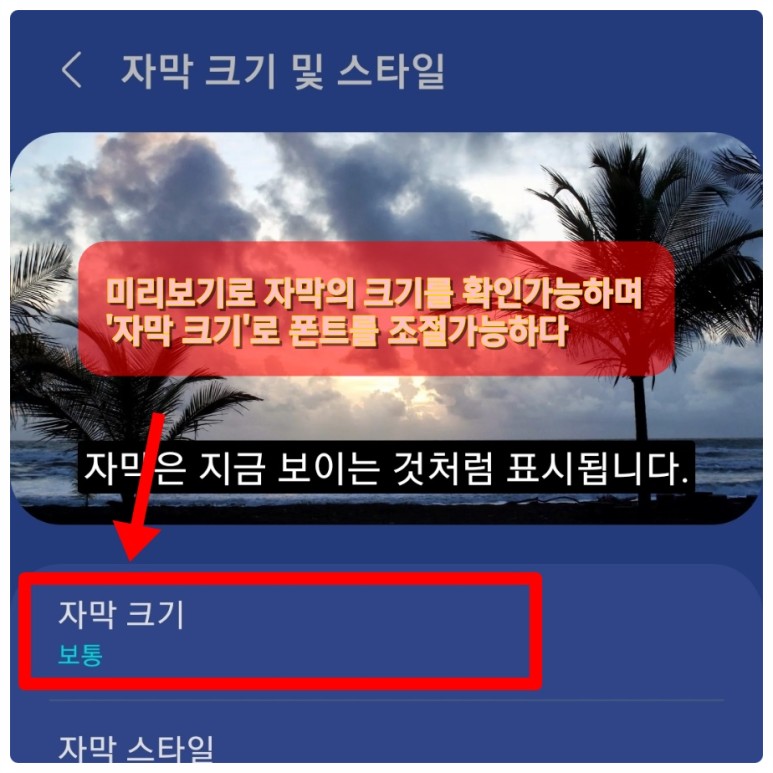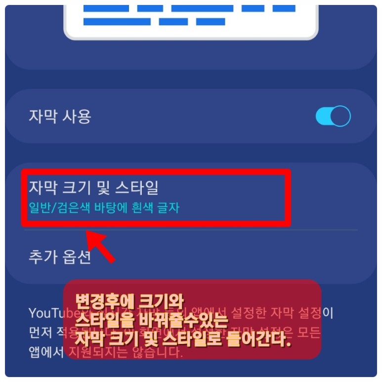 그리고 원하는 크기로 조절하는 옵션과 스타일을 변경 가능한 자막 크기 및 스타일 파트에 들어갑니다.
