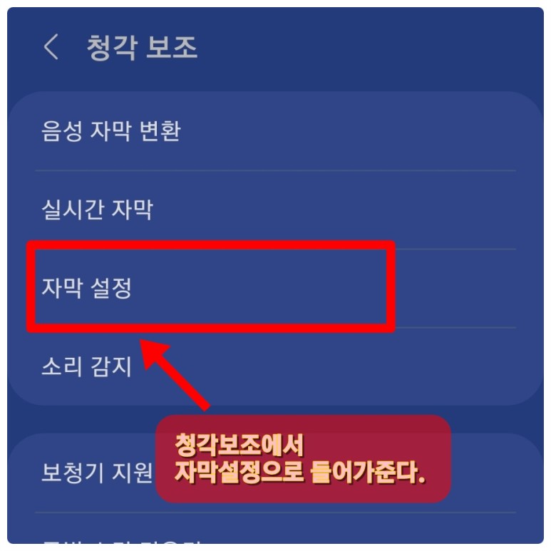 다음에 나오는 메뉴 중에서 중단 근처에 위치한 ‘청각 보조’가 보입니다. 여기로 넘어가겠습니다.