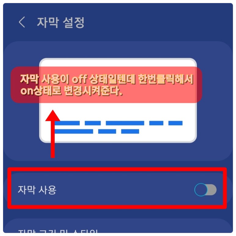위에 옵션까지 들어가면 ‘찾아오기’ 메뉴에 찾고 있는 자막 설정이 있습니다. 그래서 이 옵션을 사용하도록 하겠습니다.