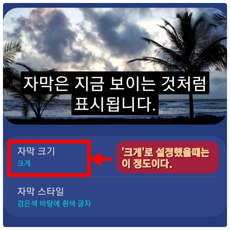 만약에 이럴 때 자막이 너무 작거나 커져서 불편하다고 호소하면 곤란하죠