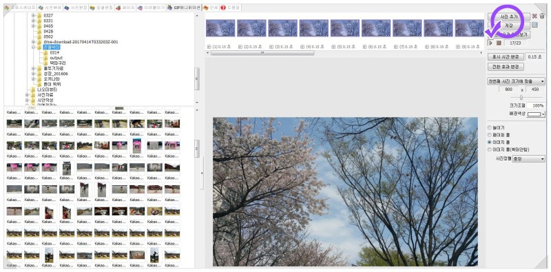그후 오른쪽에 보시면 전환효과 변경&표시시간 변경탭이 보이실거에요~ 이부분에서 사진을 아래에서 위로 전환하시거나 왼쪽에서 오른쪽으로 전환하시거나 수정후