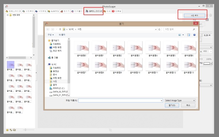 제가 보기 편하게 카드뉴스 형식으로 만들어봤어요.~~이렇게 왼쪽 파일에서 제가 gif 움직이는 영상을 만드는 사진을 읽습니다.