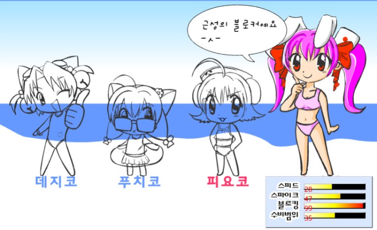 캐릭터를 골라야 돼요 이 애니메이션은 잘 모르겠지만, 언뜻 본 기억은 있습니다. 각각의 캐릭터는 나름대로의 능력치 특성을 가지고 있습니다.