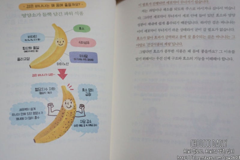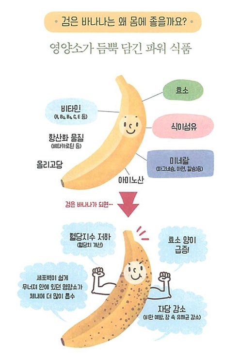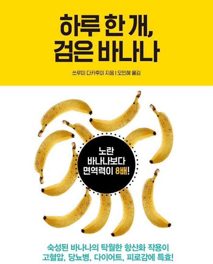 오~~ 정말 대단한 책을 찾았습니다.하루에 한 개 바나나만 먹어도 건강해지는 초간단, 건강 생활 습관! 최고입니다!숙성된 바나나의 뛰어난 항산화 작용이 고혈압, 당뇨병, 다이어트, 피로감에 특효라고 합니다.~~ 이제 노란바나나 말고 검은바나나 먹어요!마트에 가면 숙성된 바나나는 가격도 싼데 이게 영양가가 더 높다니… 일석이조예요 노란 바나나만 보면 가져올게요. 헤헤