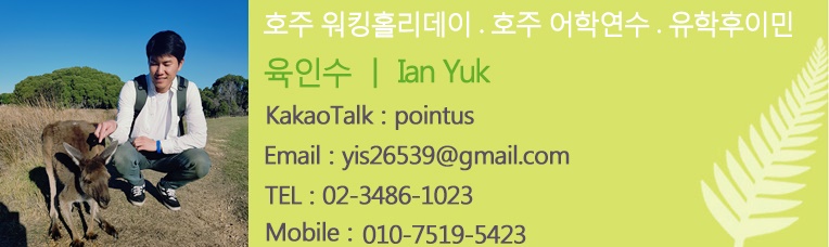 호주워킹홀리데이를준비하면서항공권,비자,어학연수등궁금하신점이있으시면언제든지부담없이연락해주시기바랍니다.호주대사관 공인상담사 호주 포인트이안 팀장님만의 특별한 혜택을 드립니다.