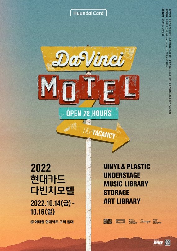 매년 대규모 콘서트를 한다는 것은 알고 있었지만, 그 외에도 문화 행사를 다양하게 하고 있습니다.이번에는 가을을 맞아 용산구 현대카드구역 일대 아트라이브러리, 뮤직라이브러리, 비닐&플라스틱, 언더스테이지에서 2022 현대카드 다빈치모텔 행사를 진행합니다.