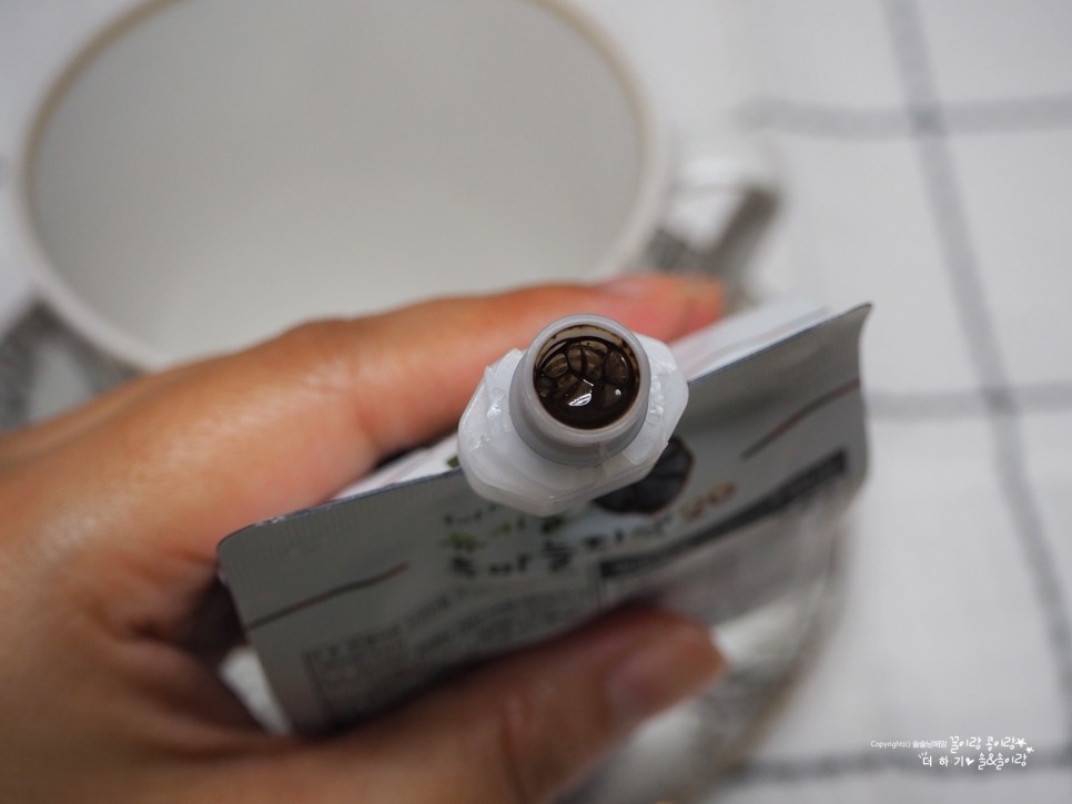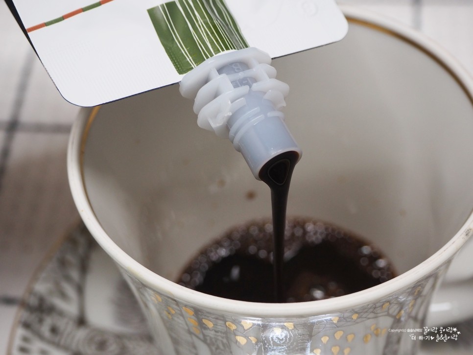 원래는 그냥 파우치 그대로 마시는데 이렇게 매번 컵에 부어서 보여드리는 이유는 정말 이게 얼마나 진한지 알려드리고 싶기 때문이죠.