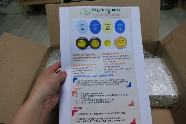 그러면 비닐을 뜯어보도록 합시다.피부는 미소 문구가 매력적이다.