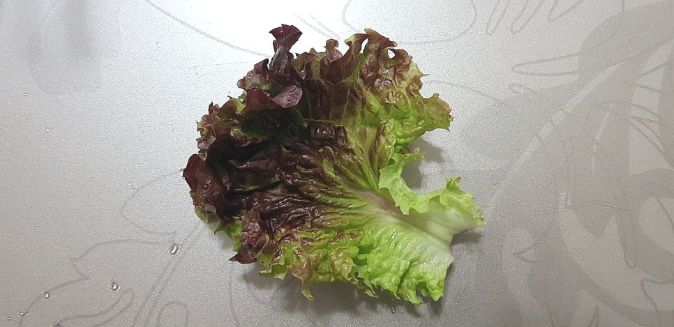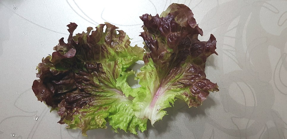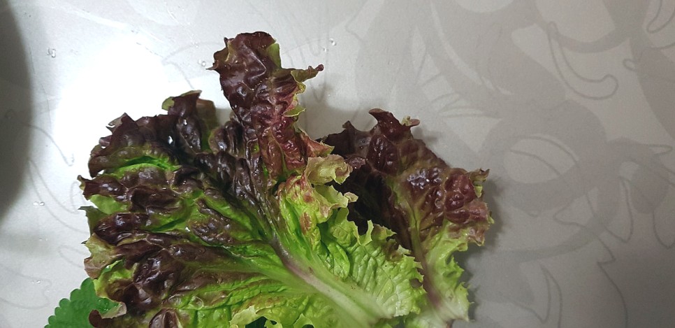 - 상추를 먹을 때 보통 상추의 끝부분을 떼서 드시는 분들이 많은데 끝부분 색깔이 갈색이고 농약이 아랫부분으로 흘러간 것 같아서 빼먹게 되네요