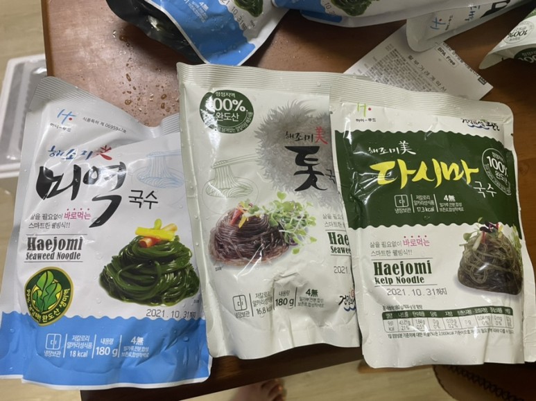 거기서 구매한 다이어트 3종 도우미 미역면 소면 다시마면!저는 홍현희씨가 먹던 상품이고, 최근에는 연예인이 다이어트식으로 자주 먹습니다.이게 왜 다이어트식이냐면… 믿을 수 없는 게 이 한봉이는 15~17kcal이라는 거예요!제가 구입한 것은 하이푸드 제품입니다 ㅎ
