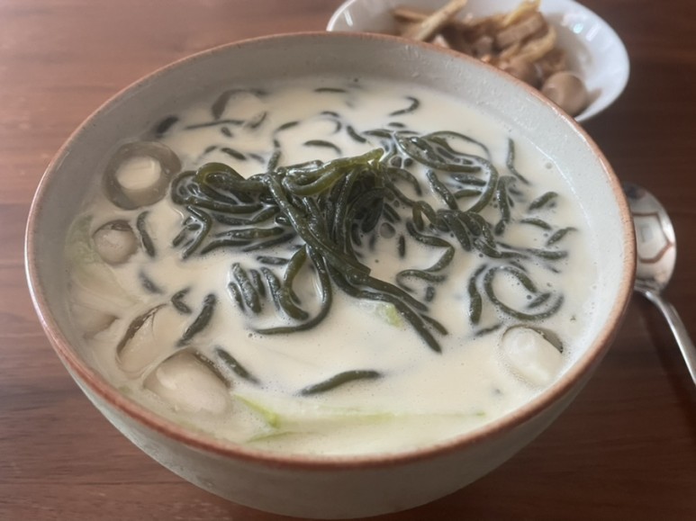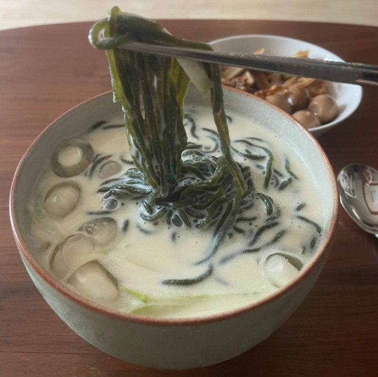 콩국물을 넣어놓으면 미역면인 줄도 몰라요 기분 좋게 한 입 즐겨봤습니다