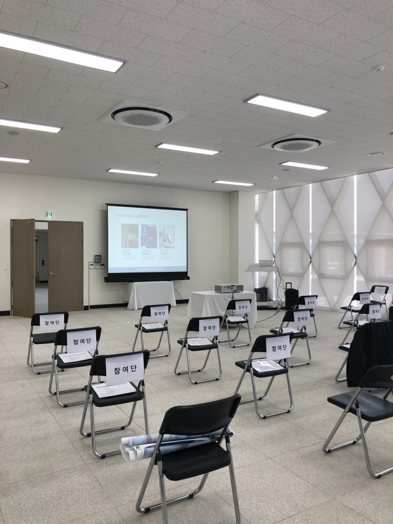 절차는 시스템 구축 결과 보고 및 서비스 시연이 이루어졌습니다. 관제 시스템, EOS, 하이퍼러저 등 운영 상황에 대한 설명을 들었습니다. 그리고 오늘 현장 방문의 핵심인 자율주행차 체험이 이루어졌습니다.