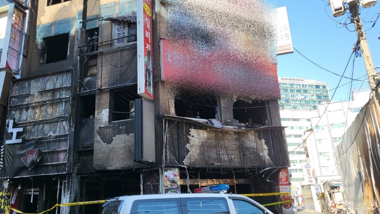 4층짜리인 이 건물은 13층은 상가, 4층은 주거용으로 쓰인다. 이날 방화로 인해 1층~2층은 전소되었고, 3~4층은 그을음 피해를 입었습니다. 화재 당시 폭발음이 들렸다는 신고도 있어 소방과 경찰은 정확한 발화 장소와 사건 경위 등을 조사하고 있습니다.